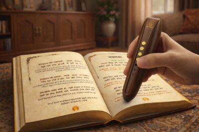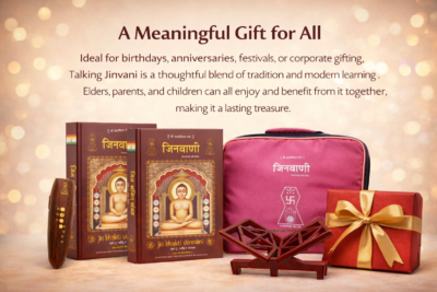 Talking Jinvani brings together tradition and technology through advanced multi-sensory learning. Using the Jin Dhwani Talking Pen, you can read and listen at the same time, ensuring correct pronunciation and a deeper connection with Jain poojas, stavans, and aartis. Elders find it easy to follow, while children enjoy learning through its engaging touch-and-listen format.